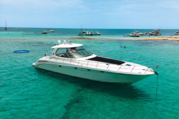 This luxurious 2 bedrooms, 2 full bathrooms vessel entertains up to 13 guests and is equipped with 2 large showers, a full kitchen which includes a full sized refrigerator as well as plenty of ice for a day on the water.